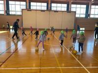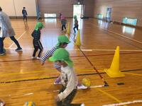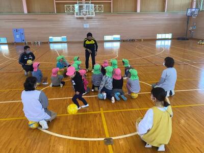 年長さんは、園のホールでラインサッカーをやっているため、この日を楽しみにしていました。もちろん年少さんも、はりきって活動をしました。