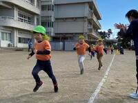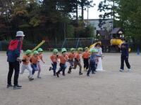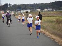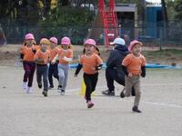 気持ちの良い青空の下、校庭でマラソン記録会を行いました。チューリップ組さんは、校庭を2周。さくら組さんは、校庭を3周します。