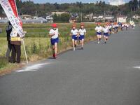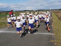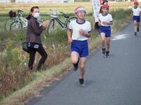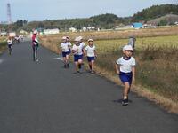 飯豊小学校のマラソンコースは、学校前に広がる田園風景の中を走る農道です。低学年は1300m。中学年は1800m。高学年は2300m。市内の中でも、比較的距離が長いほうになります。しかも、周りをさえぎる建物などがない農道コースですから、風が吹いたらとても過酷になります。この日は素晴らしい青空でほとんど風もない絶好のマラソン日和でした。子どもたちは、まずは自己記録更新を目指し、そして一つでも順位を上げるために、全力で走りました。