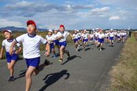 幼稚園の後は、小学校の記録会です。小学校の目的は、持久力を高め、最後までがんばりぬく気持ちを育てること。自分の記録を伸ばすために目的をもって練習を行い、自分から体力作りに取り組む意欲を養うことです。
