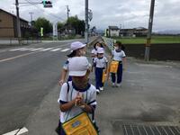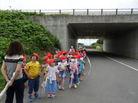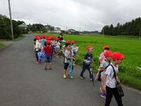1年生が、生活科学習の一環として馬場野地区の通学路の様子を観察しながら、学区内の様子に関心をもつために、探検に出かけてきました。当初は、6月29日(火)の予定でしたが、雨のために延期となっており、この日の実施となりました。
