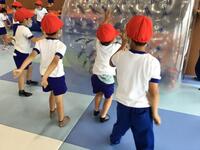続いて、みんな大好き「UFO体操」をしました。これは、年長さんと年少さんがペアになって踊るので、見ていてとても楽しい気持ちになるダンスです。