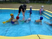 後半は、さくら組さんです。1年ぶりの幼稚園プール。昨年できなかったことができるようになっていて、確かな成長を感じました。輪くぐりやビート版の扱いもお手のものです。