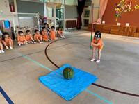 最後は、ずっと楽しみにしていた夏の風物詩「スイカわり」を行いました。