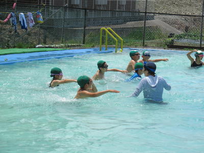 4年生は、行いと運がよく!!!学校の中で、一番多くプールに入っています。さぁ、どんどん泳ぎますよ~
