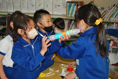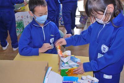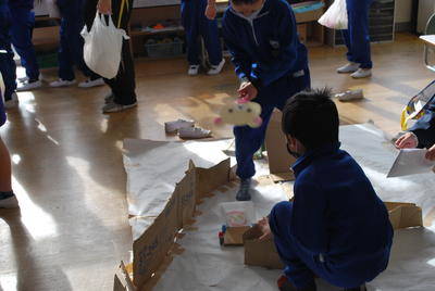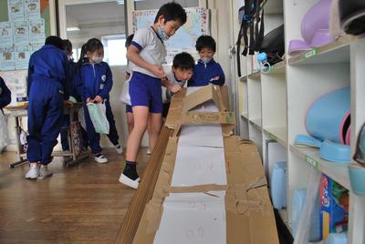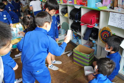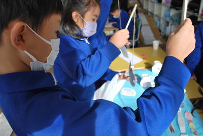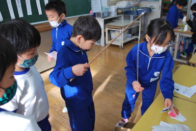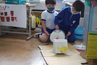 2020年12月15日 12時31分12月14日(月)2校時に1・2年生の生活科の学習がありました。今回は、2年生が1年生を招待し、自分たちのつくったおもちゃで遊んでもらい楽しいんでもらおうという活動でした。2年生の教室からは1年生の楽しそうな声や分かりやすく説明し、自分のコーナーへ来てもらおうとする2年生の声が響いたいました。では、その一部を紹介します。