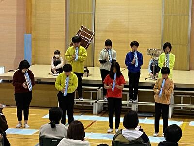 2022年11月18日 08時25分5年生は、先日の相馬新地地区小・中学校音楽祭で発表した「合奏 新宝島」です。5年生はこの相新音楽祭に向けて、夏休みから一生懸命練習してきました。音楽祭では、観覧者の入場制限があったのですが、この日は目の前に保護者の皆様の顔があり、緊張していましたが5年生のパワーでがんばりました。