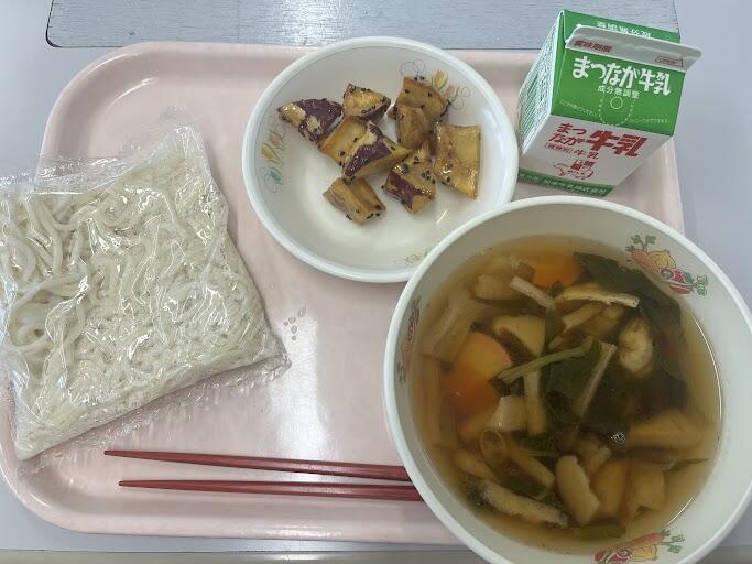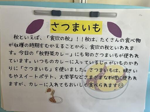 給食でも栄養豊富な秋の食材を取り入れ、生徒たちにも季節の食材を楽しんでもらえるように工夫しています。