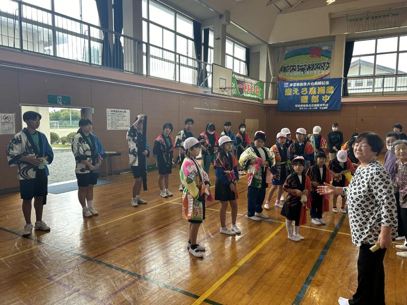 今年初めて踊ることになった小学生も、講師の先生や中学生から教えてもらって少しずつ形になってきました。地域の伝統を引き継ぐ子どもたちの姿を楽しみにしていてください。