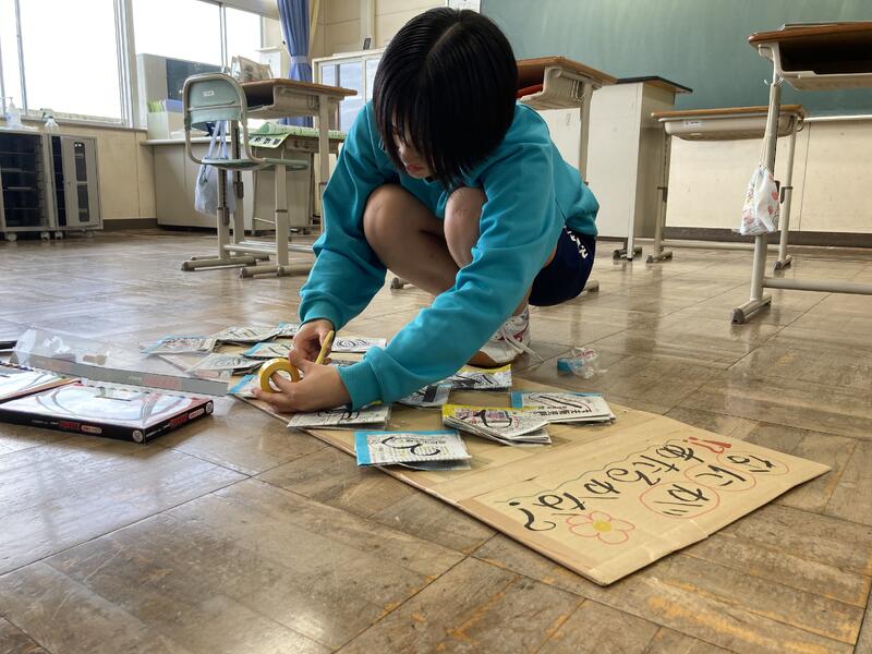 10月17日は小学校で全校制作の仕上げを行いました。何を作ったのかは当日のお楽しみ。