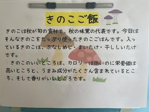 秋と言えばきのこごはん!何杯もおかわりしている姿が見られました