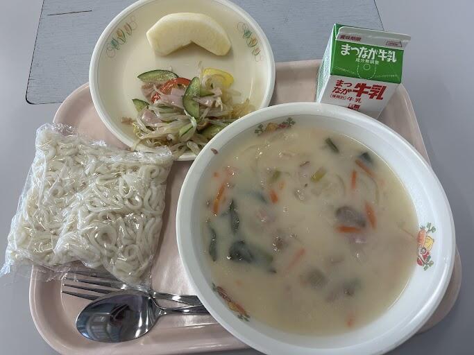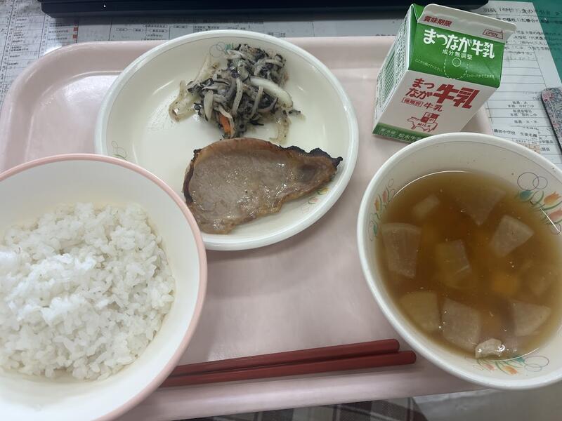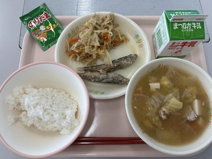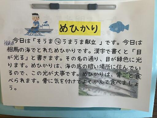 そして今年度3度目のめひかりは福島県の特産物!今年は例年より出番が多い気がします。めひかりと一緒に出た豚汁は「相馬豚汁」と名付けられていて、相馬どだれ(さといも)が入っているのが特徴です。