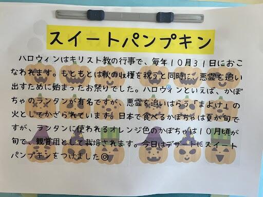 今日はハロウィン!給食にもカボチャを使ったメニューが出されました。