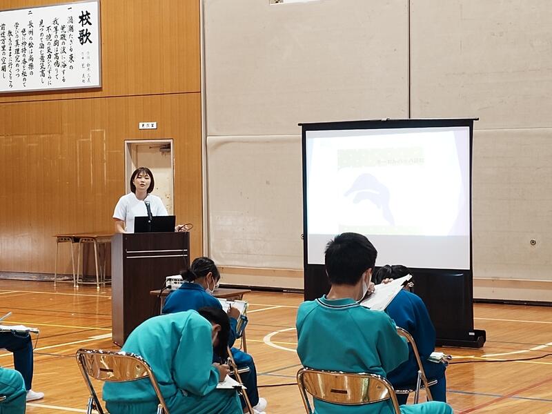 ※本日お越しいただいた講師の先生の中に、磯部小・中学校出身の方がいらっしゃいました。実社会で活躍する磯部地区の先輩にお会いする貴重な機会にもなりました。