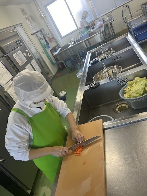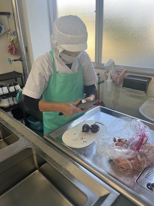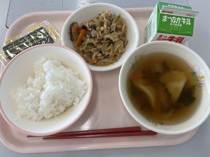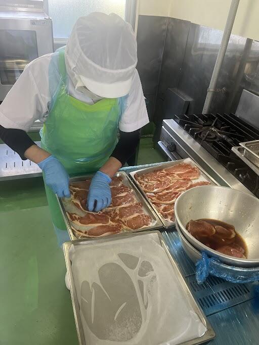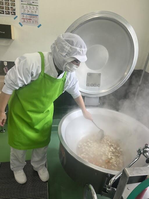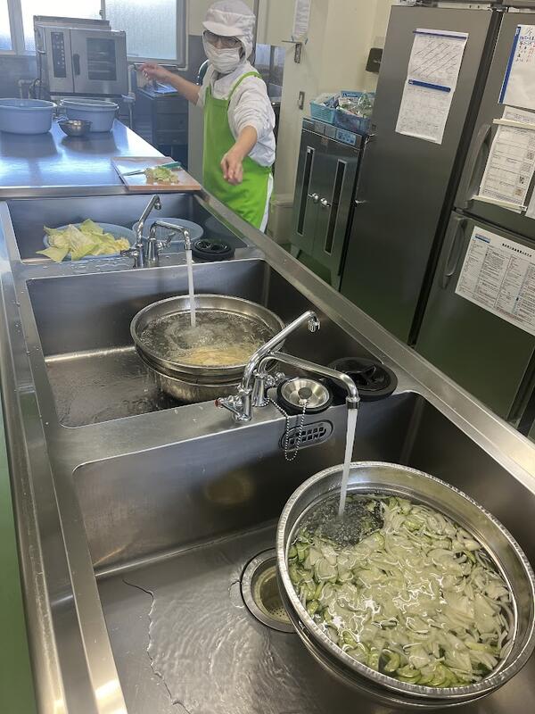 8日の給食はしょうがやき。この日は給食室で調理する様子を撮ってもらいました。