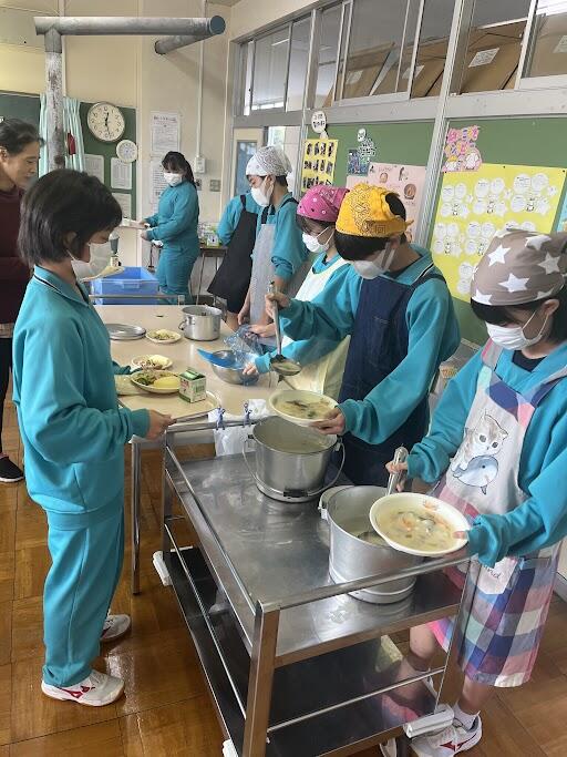 磯部中の生徒たちも、譲り合いながらおかわりをしている姿が見られました。