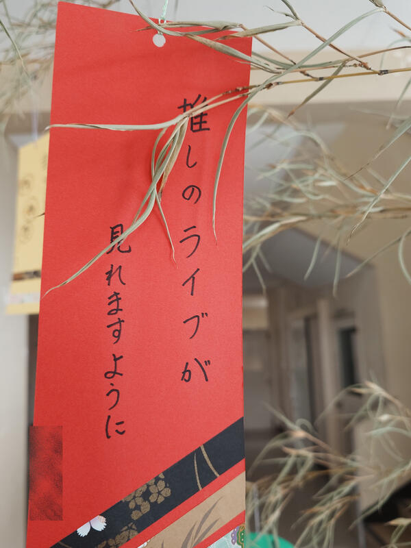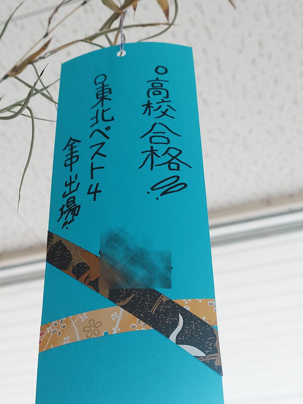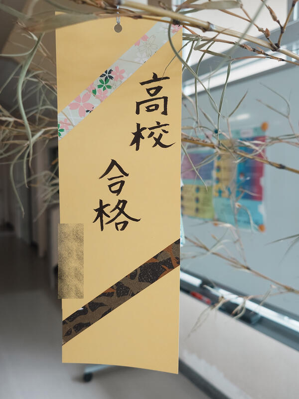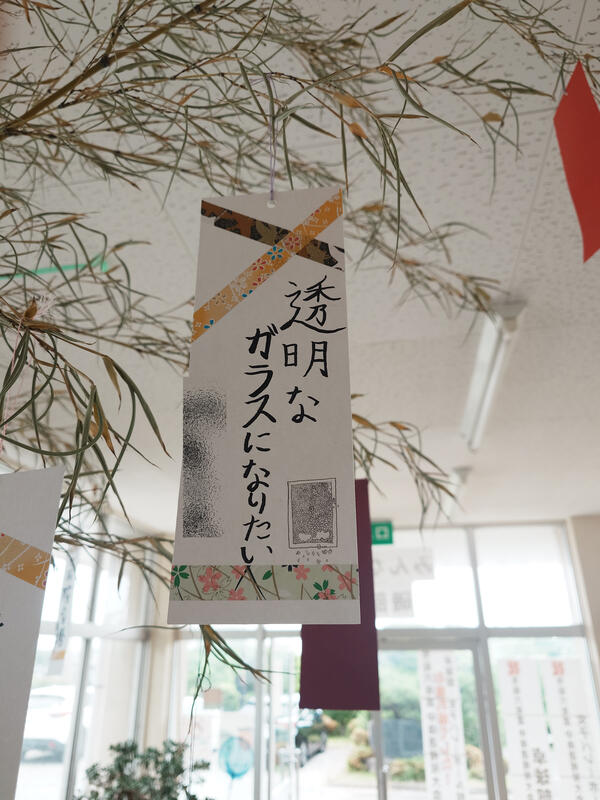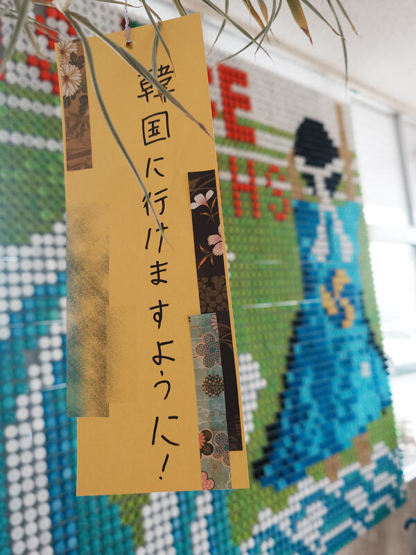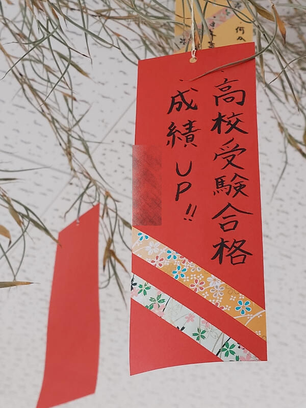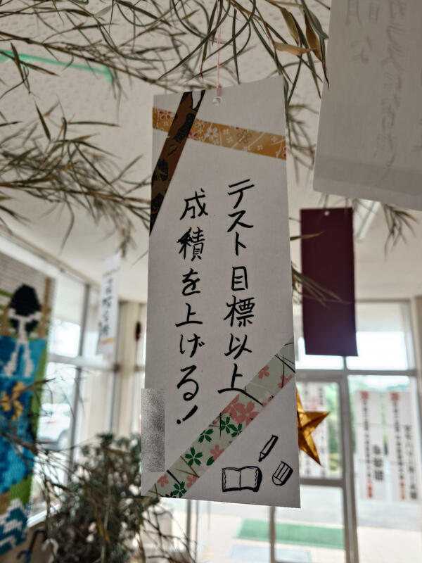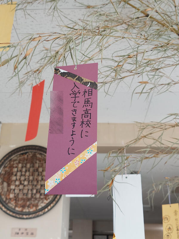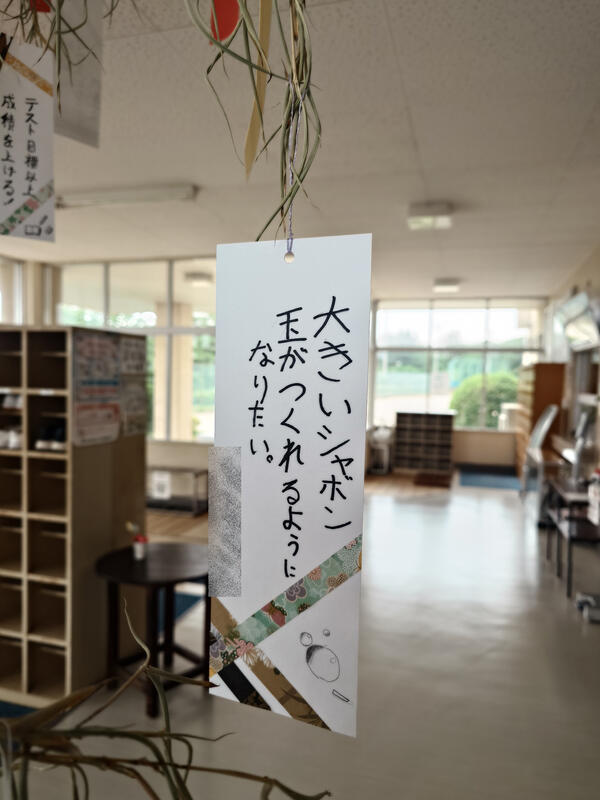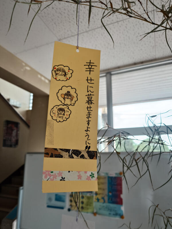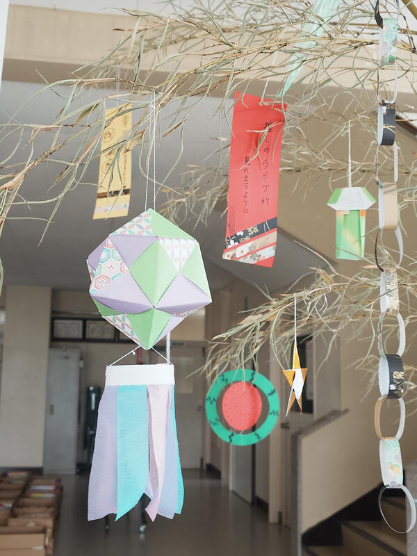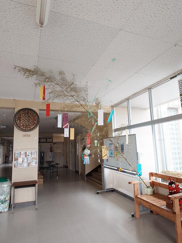 今年も用務員の小野田さんが竹を、短冊や飾りをスクール・サポート・スタッフの馬場さんが用意してくれました。