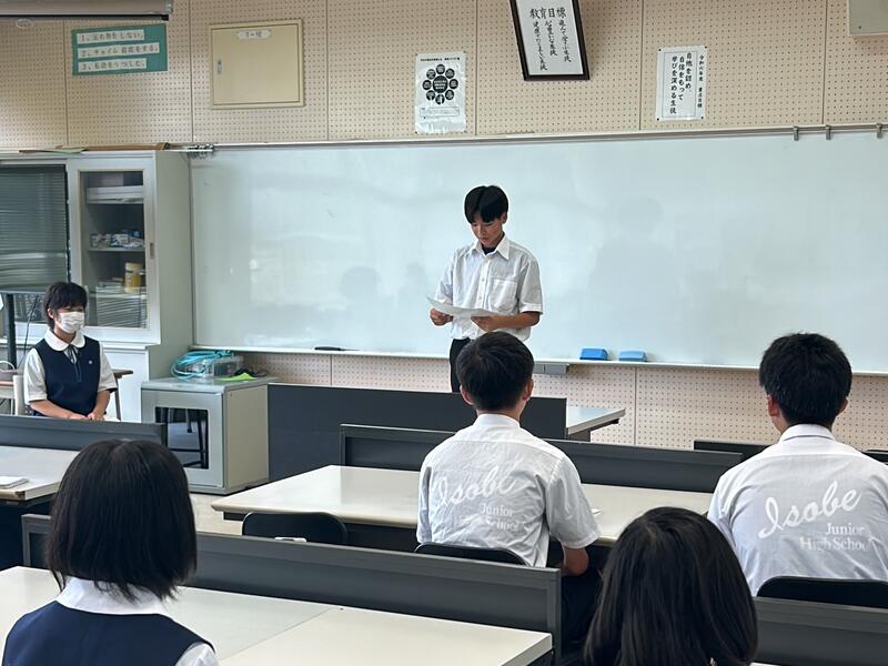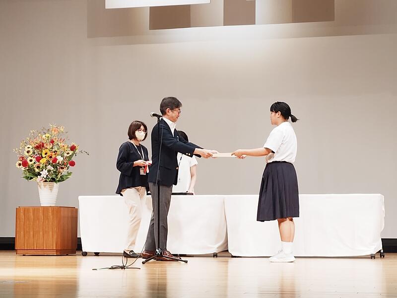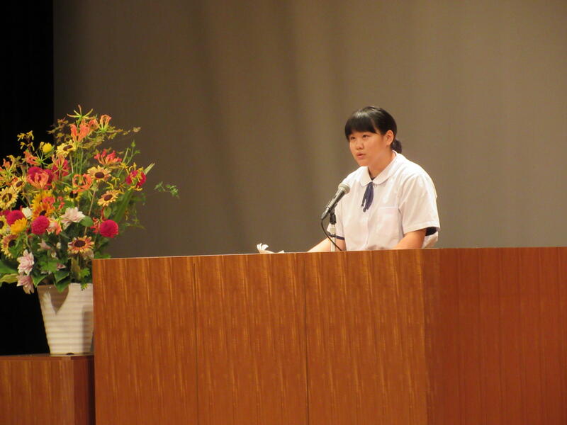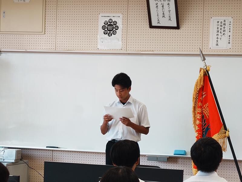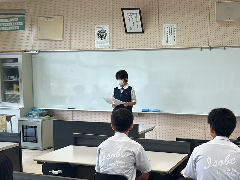 終業式の後には、表彰伝達、各学級の代表生徒からの1学期の反省や夏休みの目標についての発表がありました。