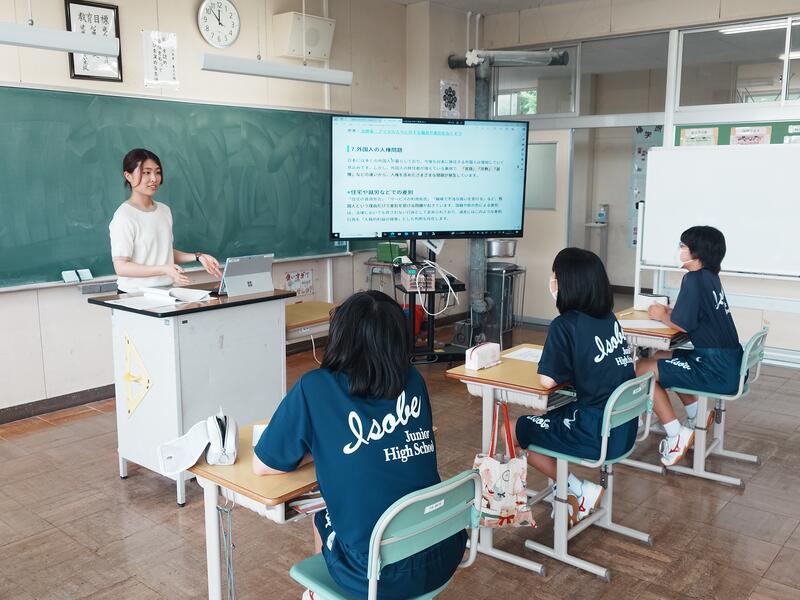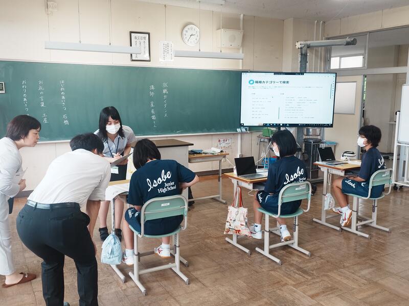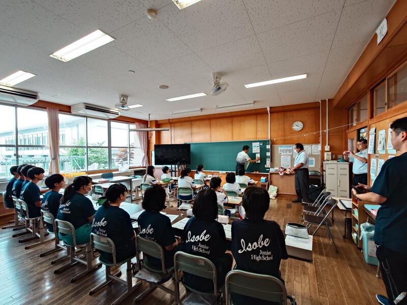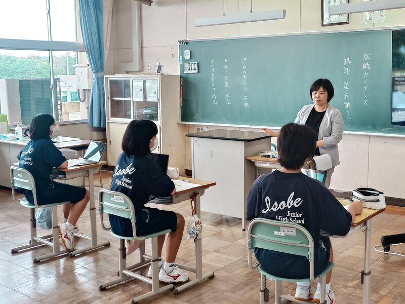 本日、この事業への参加を希望した卒業生の荒さんが磯部中学校を訪れ、教職員の仕事を体験しました。