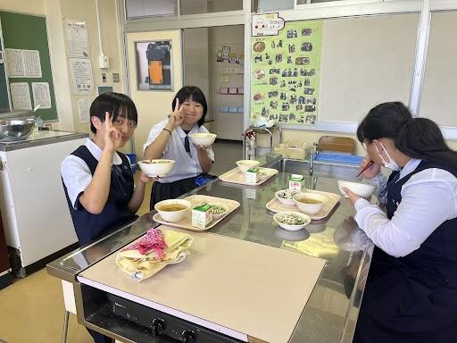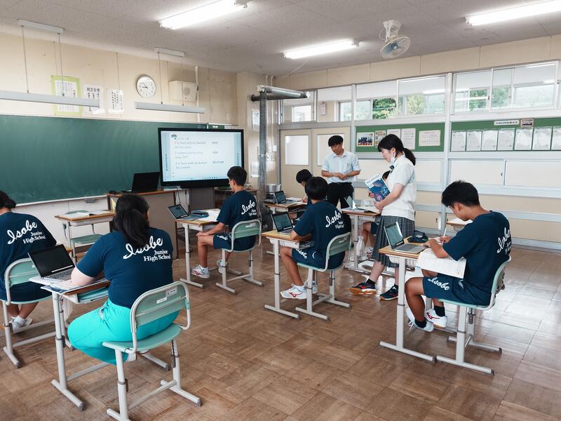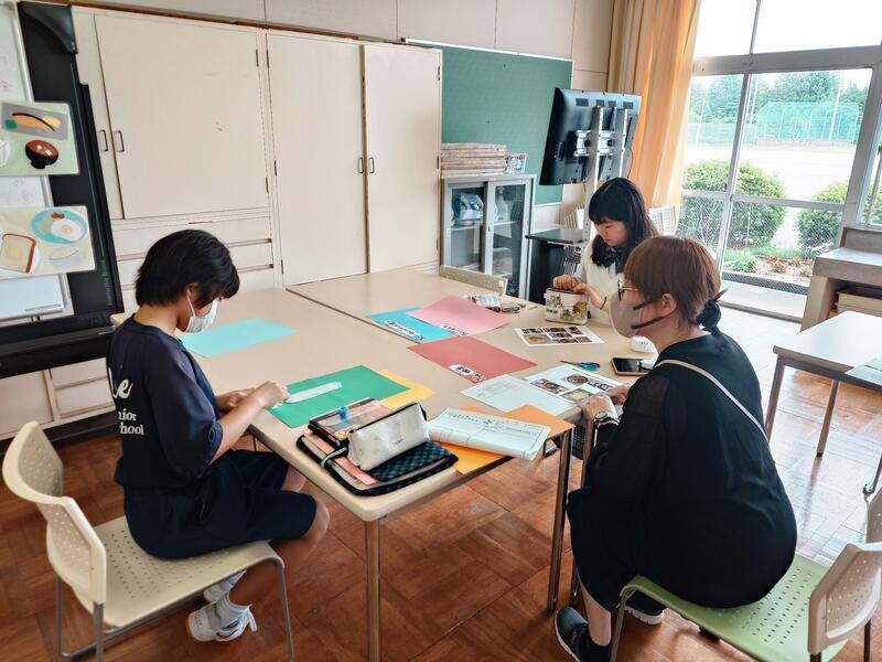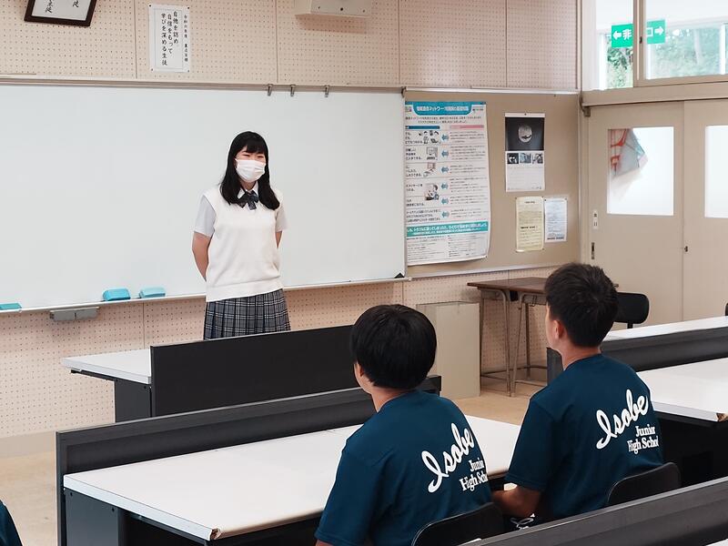 また、今日は英語と家庭科の授業の補助をしてもらいました。知っている先輩にわからないところを教えてもらったり、先生の補助として一緒に活動したりするこの2日間は、中学生にとっても有意義なひとときでした。