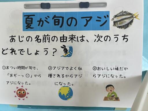 火曜日はアジの南蛮漬けでした。大きなアジで食べ応えがよく、南蛮漬けなのでさっぱり食べられました。夏にぴったりですね。