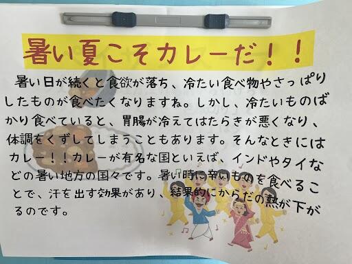 1学期もあと1週間。夏バテ予防にもしっかり水分と栄養を摂って、元気に夏休みを迎えられるとよいですね。