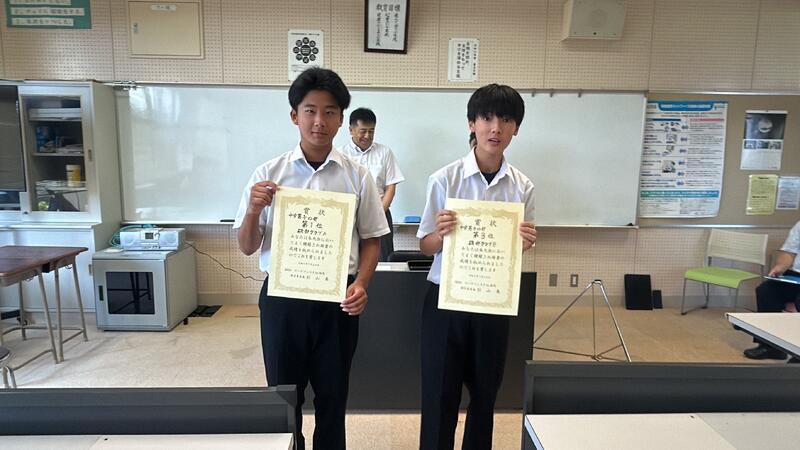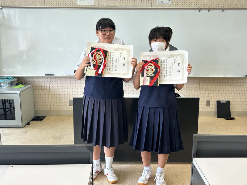 2人とも堂々とした発表で、優良賞をいただきました。練習時間をなかなか取れない中での出場でしたが、貴重な経験となったことと思います。2人がこの経験を今後に活かしてくれることを期待しています。