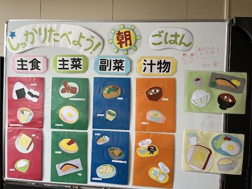 朝ごはんについて、保健委員さんが自分手帳を見ながら皆に説明しました。そして自分手帳を使って朝食調べを5日間実施。最終日の本日は、朝食摂取率が90%で、多くの生徒が朝ごはんを食べてきていました 詳しい朝食摂取調査の結果は、ほけんだよりにて保護者の方へお知らせしたいと思います。子どもたちが学校でしっかり学習・運動するため、また熱中症予防には朝ごはんは必要不可欠です。健康・命を守るためにも、何か簡単なものを一口でも、栄養を補給してから登校してくれるといいなと願っています。