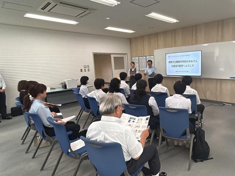 「総合的な学習の時間」のキャリア教育の一環として、福島市にある(株)日進堂印刷所様を全校生で訪問してきました。この訪問は、『感働!ふくしま』プロジェクトの事業「小中学校向け工場見学」を活用して実施しました。