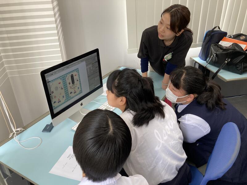 会社の概要説明をいただいたあとで、実際にコンピュータを操作して手帳やポストカードを作成しました。