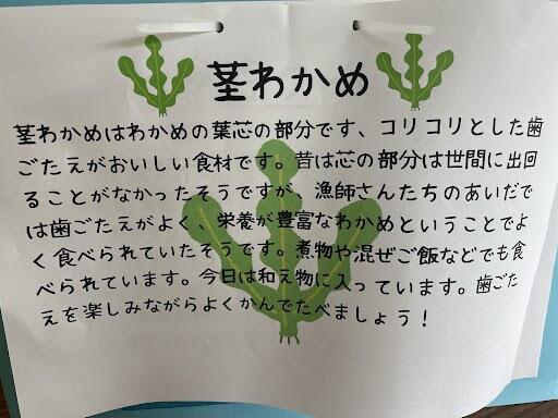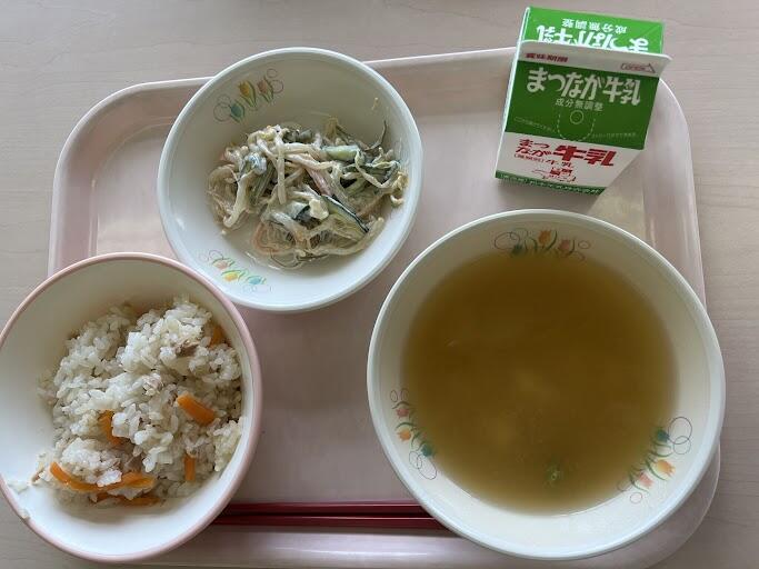 火曜日はツナご飯と茎わかめのサラダ。しゃきしゃきの歯ごたえが良いサラダでした。