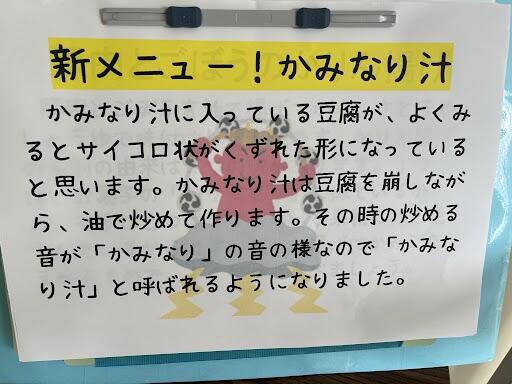 火曜日は豚キムチ丼と新メニューのかみなり汁!