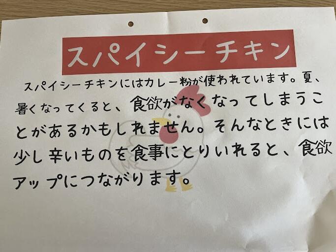 スパイシーチキンにはカレー粉が入っており、こちらも暑い日にぴったり