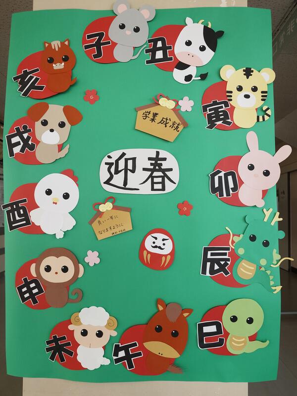 昇降口には、スクールサポートスタッフの方が作ってくれた掲示物が貼ってあります。新年を迎え、温かい気持ちになりました。その他にも校舎内に掲示されているものがあります。来校時に、ぜひご覧ください。