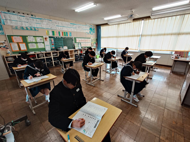 3年生は冬休みの学習の成果を試すべく、実力テストに取り組みました。それぞれの進路実現に向けてガンバレ