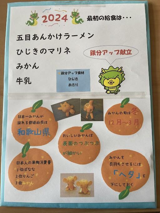3学期の給食が始業式の次の日、1月10日から始まりました