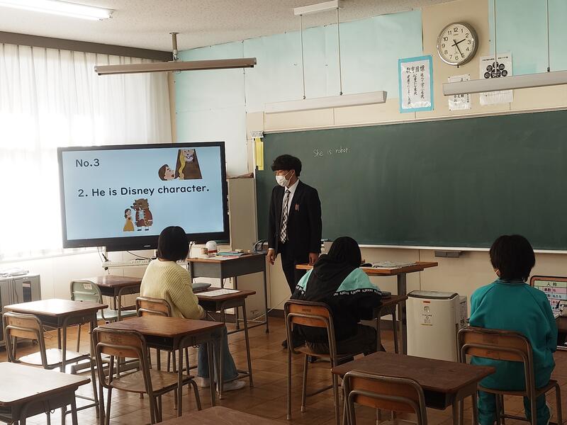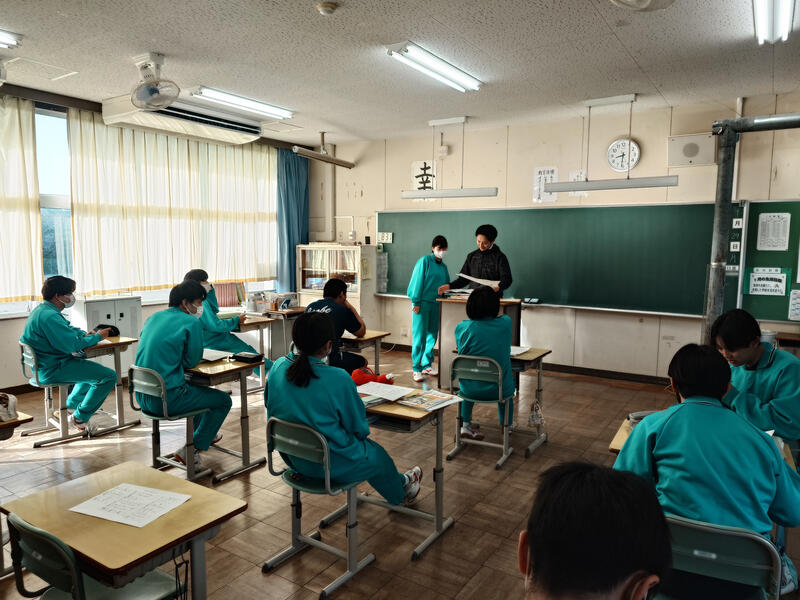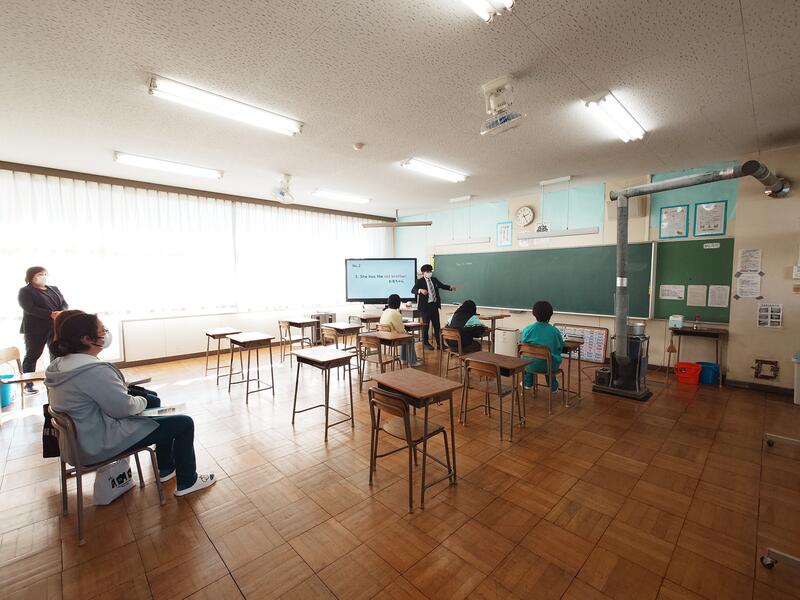 まずは、1年生と一緒に英語の授業を体験してもらいました。クイズやゲームを行いながら、少しだけですが、中学校の英語を感じてもらえたようです。