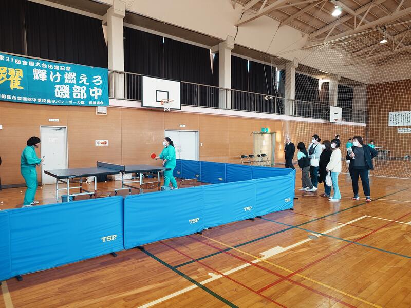 | 卓球とバレーボールを見学し、卓球を少し体験してみました。 |