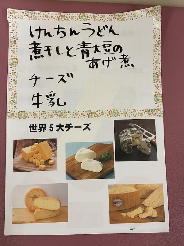 17日 けんちんうどん 煮干しと青大豆の揚げ煮 チーズ 牛乳<カルシウムアップ献立>