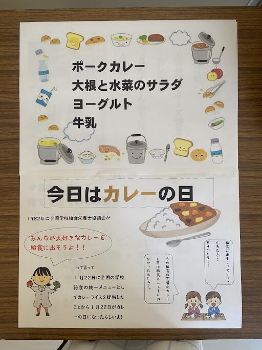 給食ではきのこカレー・夏野菜カレー・冬野菜カレー・シーフードカレーなどいろいろなカレーが出ますどれもおいしいけど、「普通のカレーがやっぱり一番!落ち着く!」という先生もいましたみなさんは何カレーが好きですか??