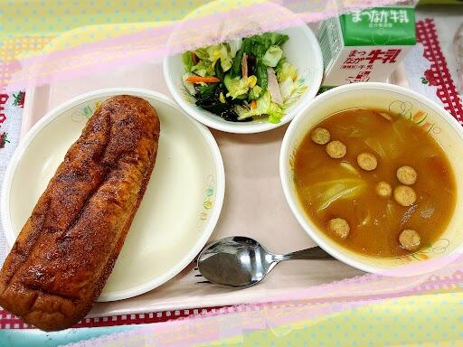 25日 ココア揚げパン カレーヌードルスープ 海藻サラダ 牛乳