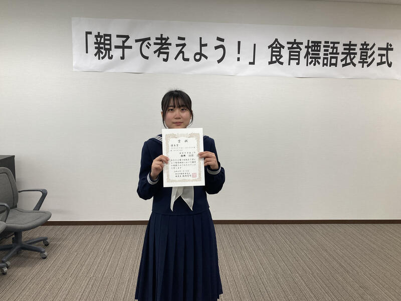 本校からは、3年の狩野さんが優良賞を受賞し、表彰されました。
