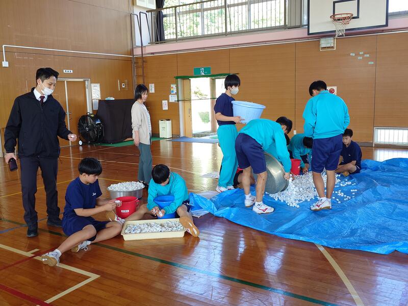 2023年10月20日 17時27分明日の黒潮祭に向けて、全員で会場準備です。