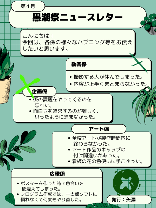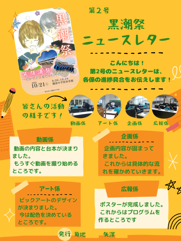 広報係さんが、各係の進捗状況を「黒潮祭ニュースレター」でお知らせしてくれています。