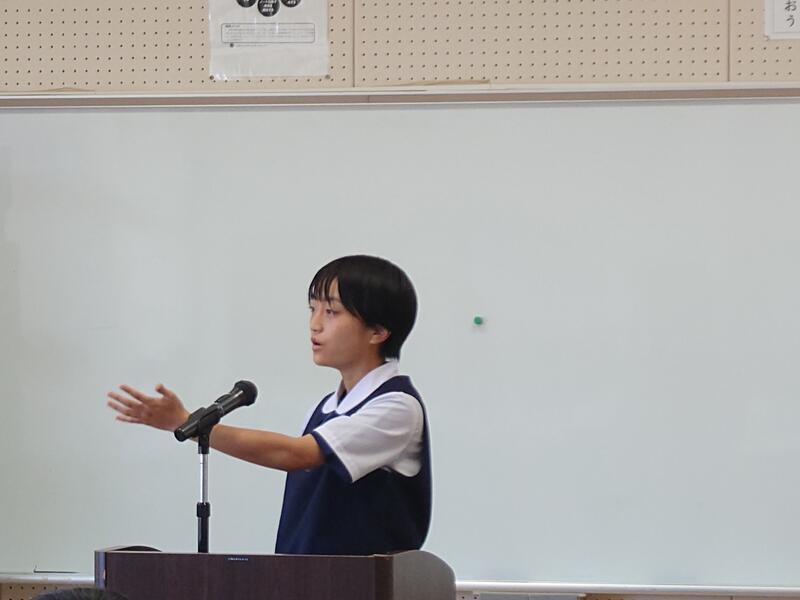 次に、夏休みの反省と2学期の抱負について、各学年の代表生徒から発表がありました。