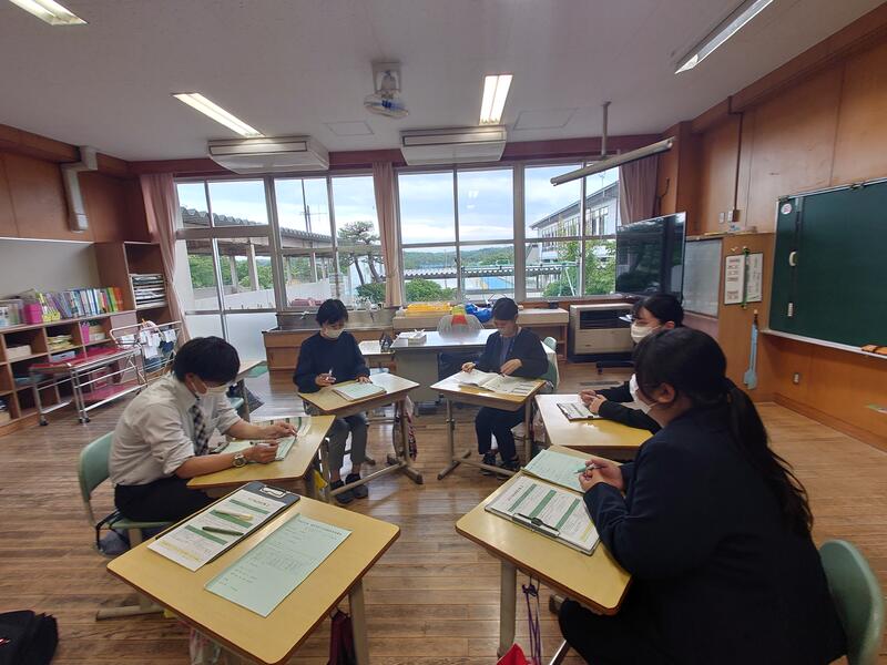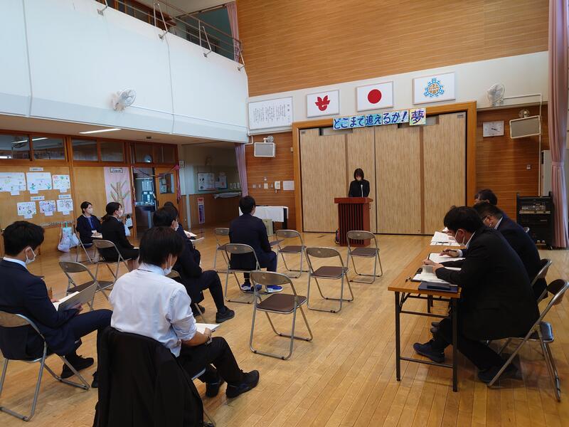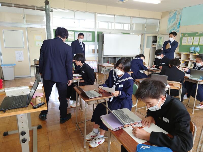 英語の授業では、「基礎的・基本的事項の確実な定着を図るとともに、(コミュニケーションを行う)目的や場面、状況などを明確にした言語活動を行う」ことを大切にしています。今回は、福島県教育庁相双教育事務所学校教育課より山内指導主事にお越しいただき、指導助言をいただきました。