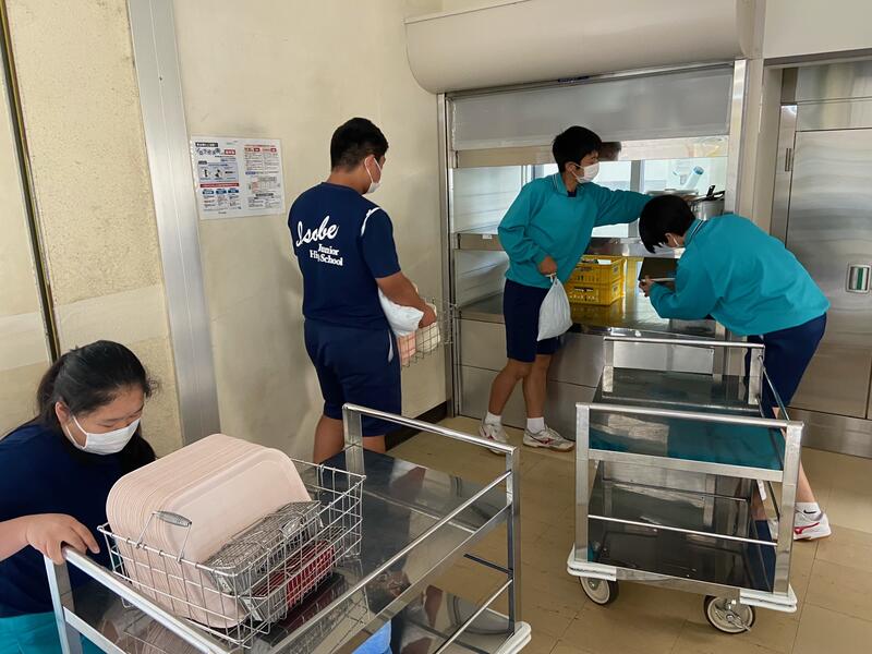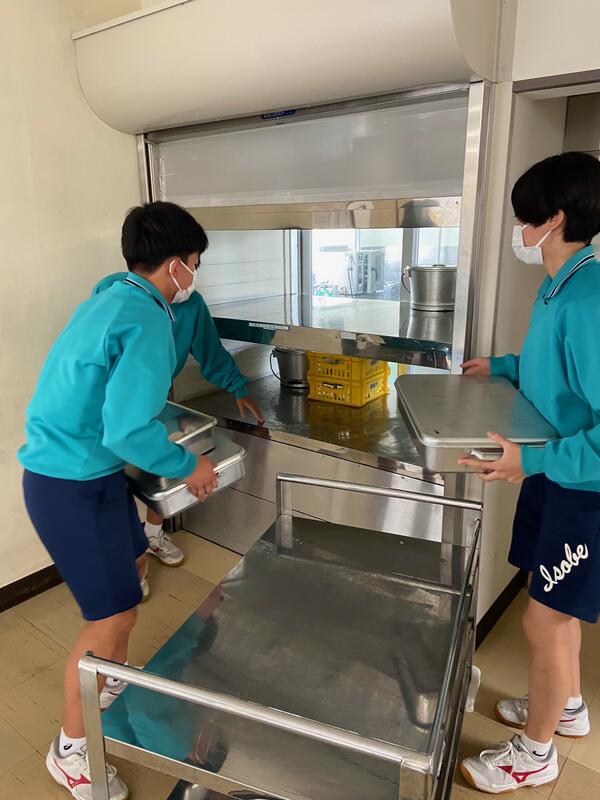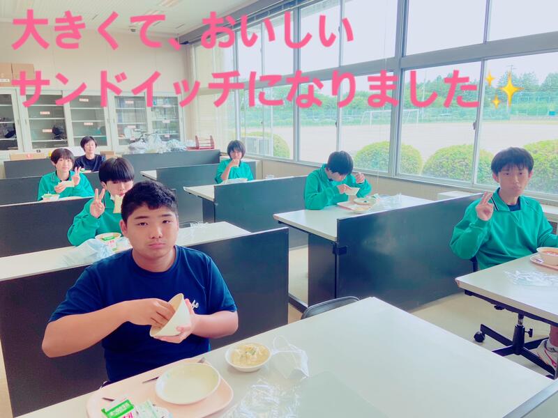 2年生は、3、4時間目が調理実習でした。肉じゃがと青菜の卵とじをおなか一杯食べた後の給食で、いつもたくさん食べる2年生男子もさすがに、「いやーおなか一杯っす!今日は給食(完食)無理かもしれないっす!」と言っていましたが…。