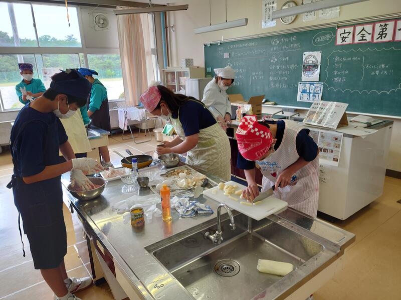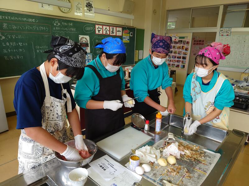 2年生が調理実習で「煮込みハンバーグ」に挑戦しました。