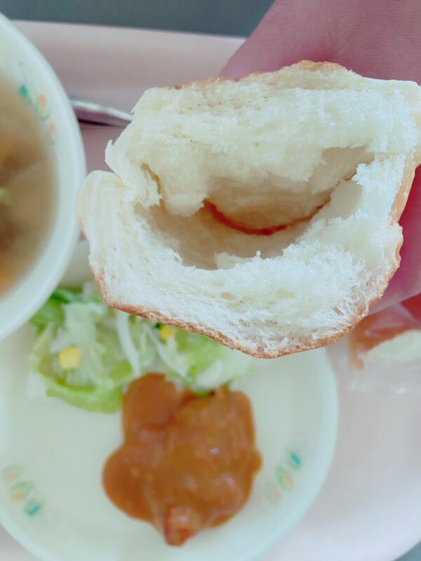 今日はパンの日ですが、ジャムなどがついていないメニュー。みんなはパンをどうやって食べるのかなーと見てみると…