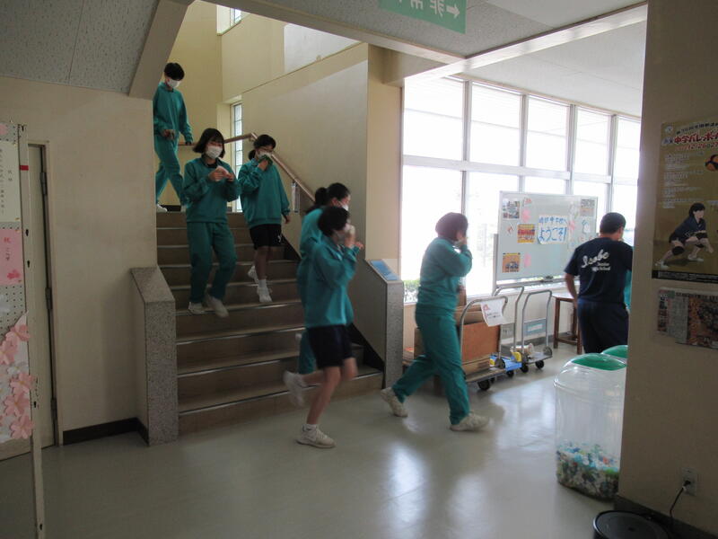 音楽室を出火元として訓練を行い、無言で迅速に避難することができました。